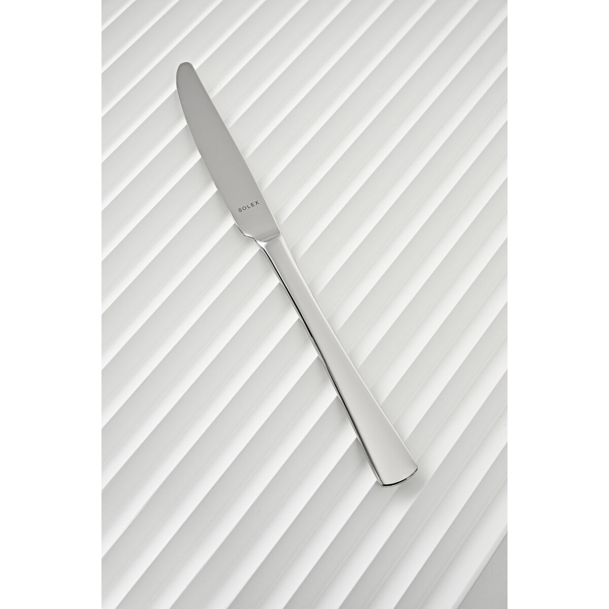 Chrom-Nickel-Stahl 18/10, rostfrei, poliert. Messer mit geschmiedeter Klinge. 3,0 mm stark.