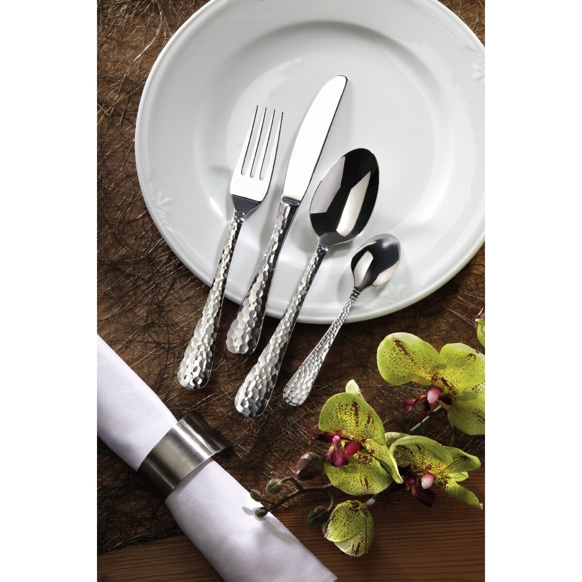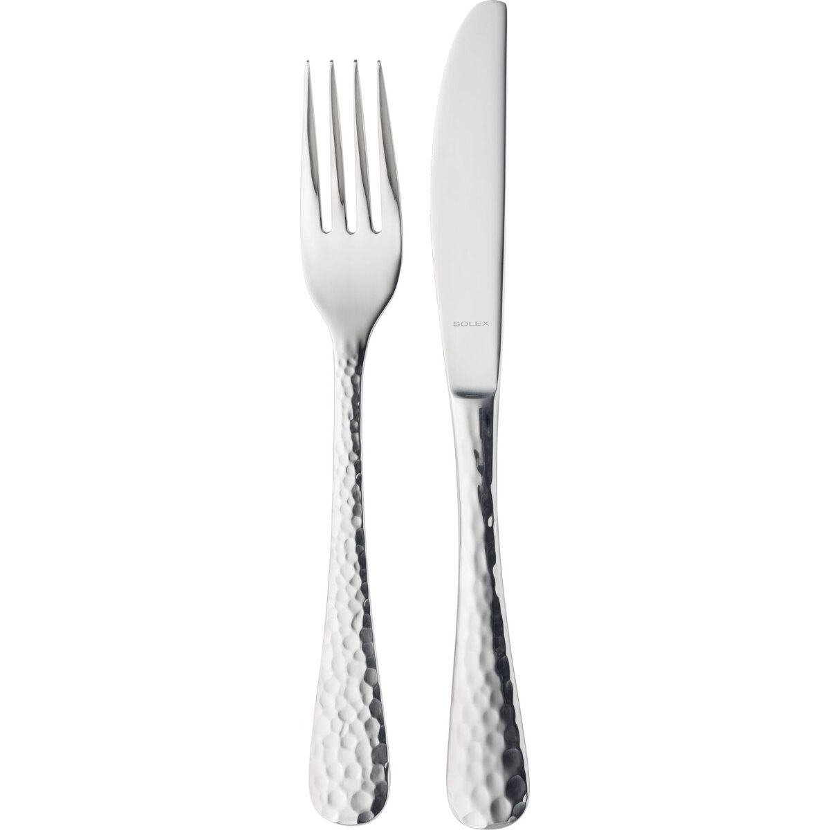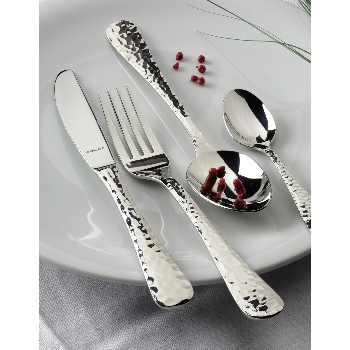 Chrom-Nickel-Stahl 18/10, rostfrei, poliert. Messer mit geschmiedeter Klinge. 3 mm stark. Qualitätsbesteck. Hohe Stabilität.