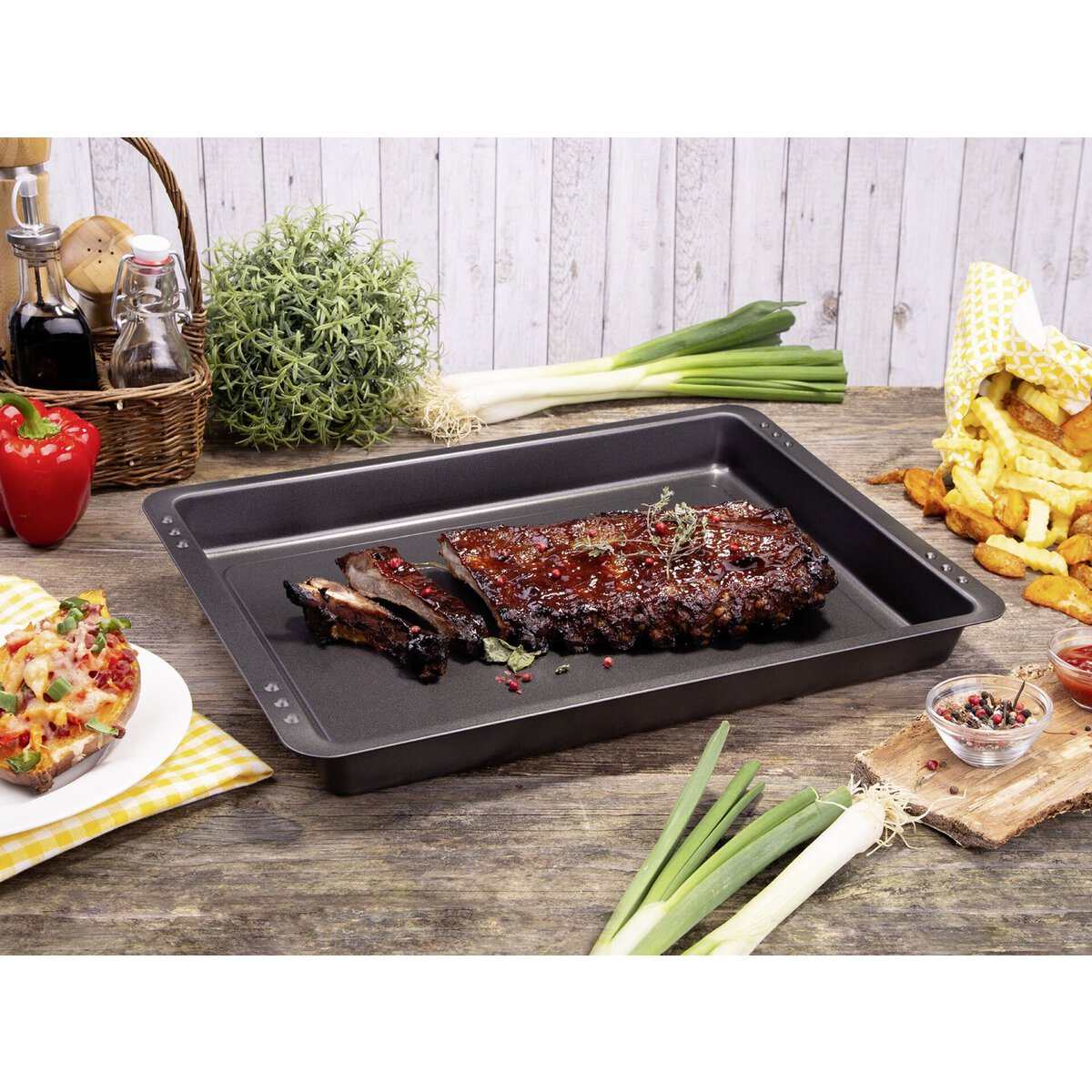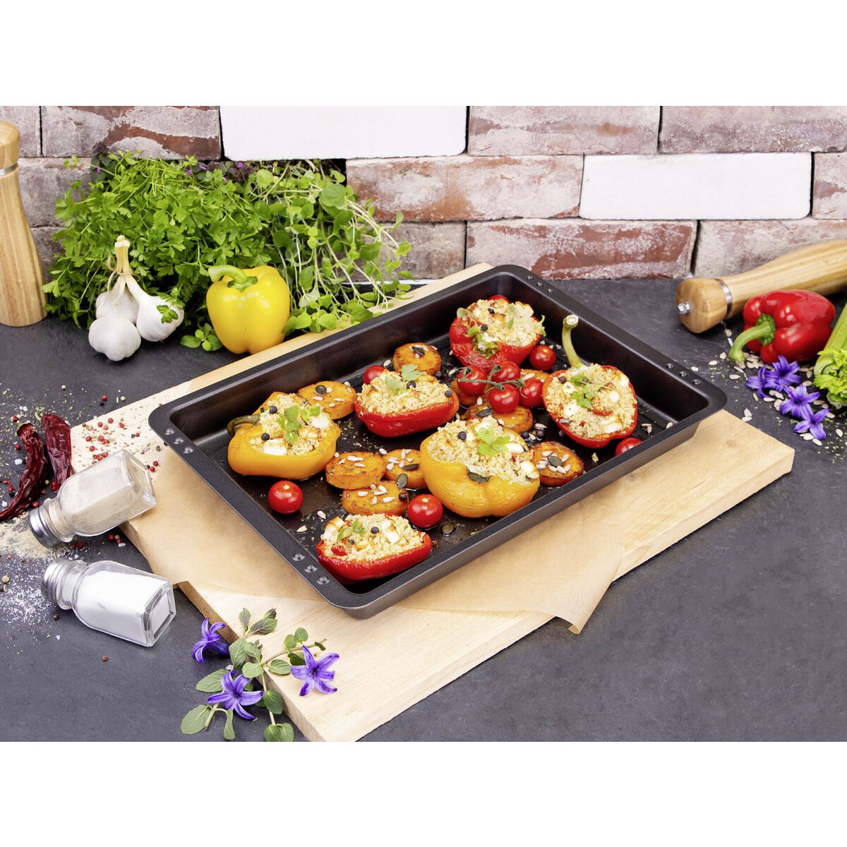 ILAG Antihaftbeschichtung - Zweischicht-System, bis 250°C hitzebeständig, extra tief, mit seitlichen Arretierungspunkten, um eine zweite Form als Deckel verwenden zu können, Farbe: anthrazit-metallic.