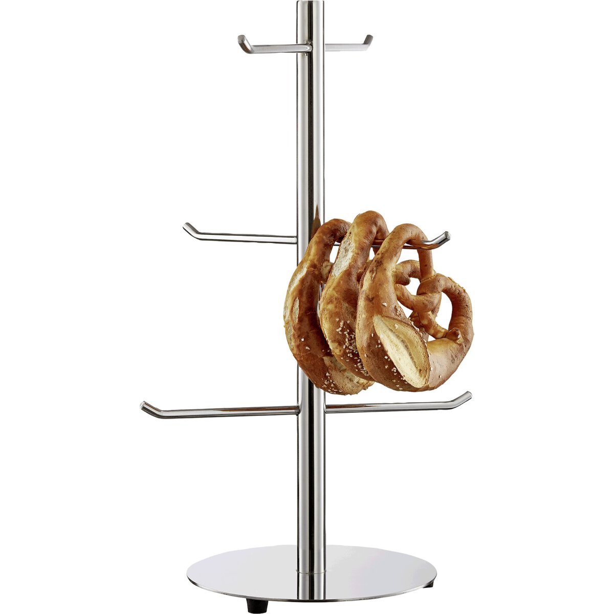 Brezel-/Wurstständer aus Chrom-Nickel-Stahl mit Antirutschfüßchen.