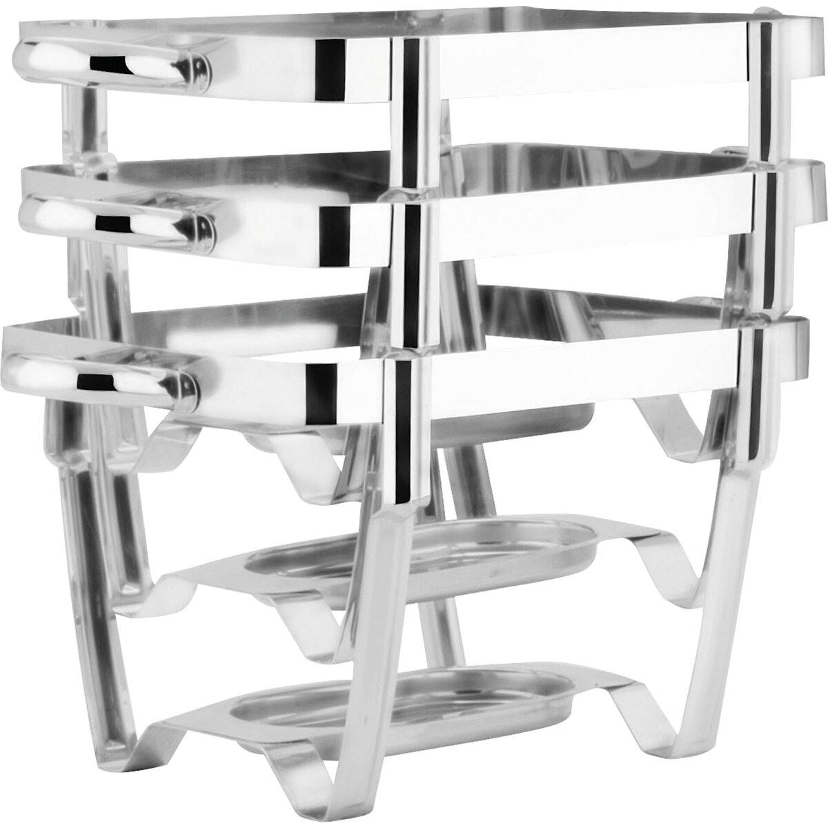 Edelstahl 18/4, stabiler, stapelbarer Rahmen - mit GN-Einsatz 65 mm tief und 2 Brennstoffhaltern, inkl. Deckelhalterung.