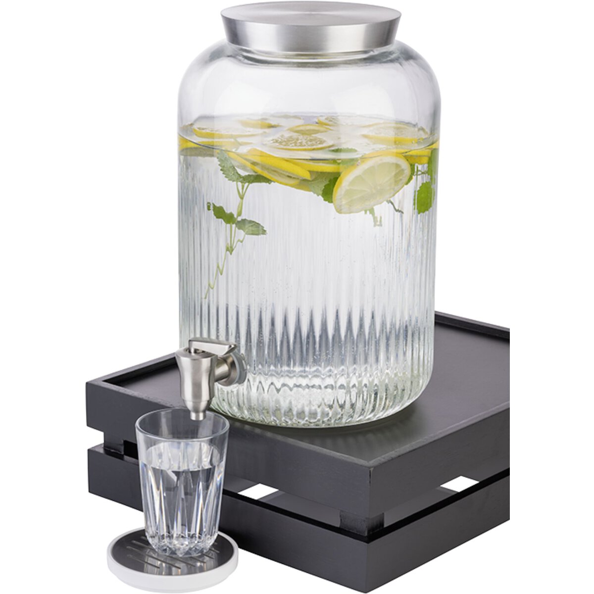 Dicke, stabile Wände, weite Öffnung für große Zutaten. Behälter aus Glas, Zapfhahn aus Edelstahl, Deckel aus gebürstetem Edelstahl. Stabile, hochwertige Ausführung. Spülmaschinengeeignet.