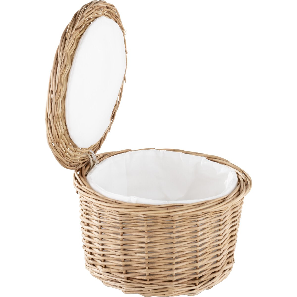 Vollweide, innen mit gepolstertem Stoff-Futter, mit aufklappbarem Deckel. Lange Warmhaltung. Für ca. 15 Eier.