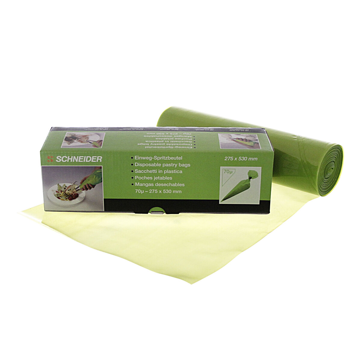 Polyethylen, grün. 70 my. Geschlossene Spitze. Für Lebensmittel im Temperaturbereich von 40°C, Dauer 24 Std. Im 100er Pack.