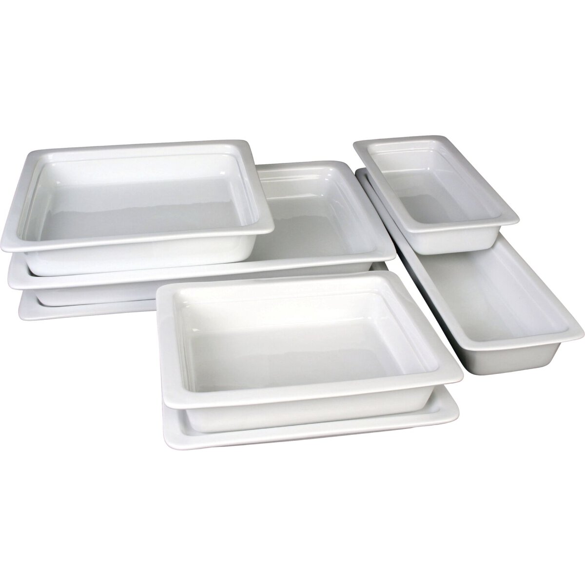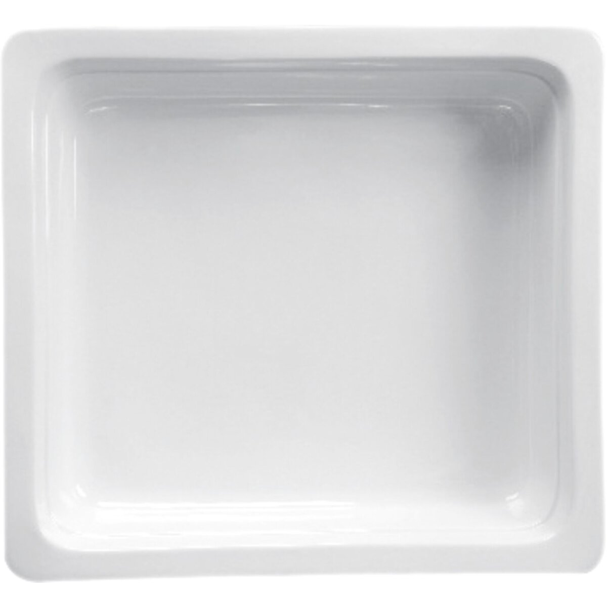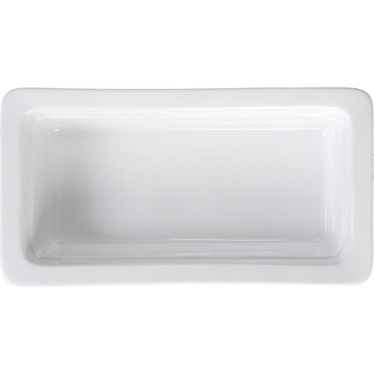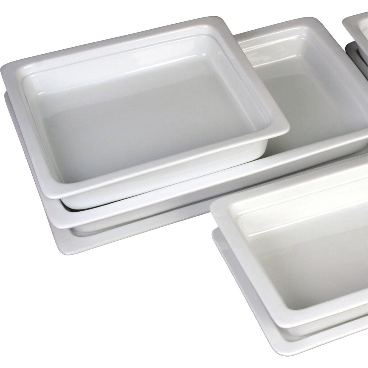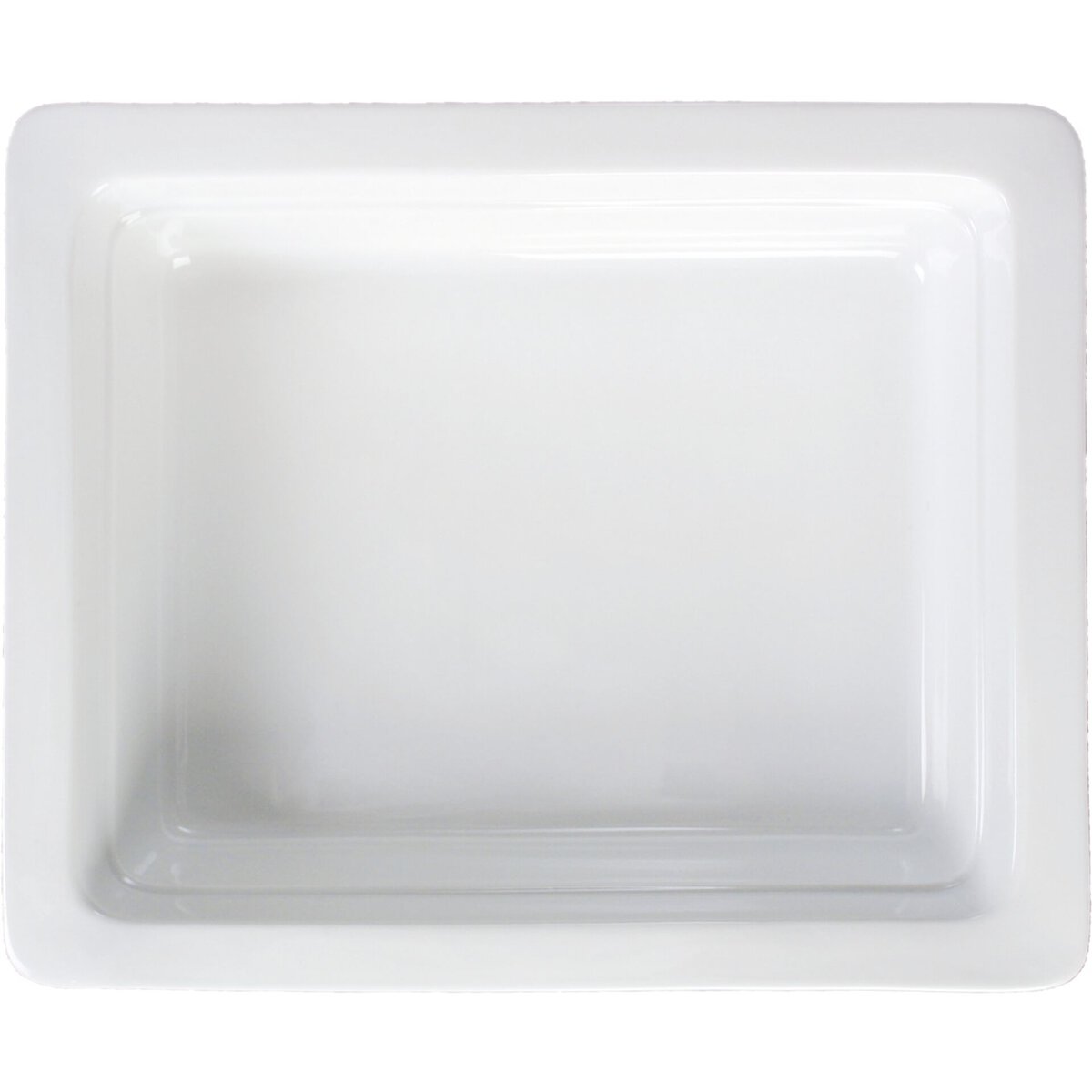 Porzellan, weiß. Tiefe 65 mm. Temperaturbereich von -20°C bis 350°C. Nicht thermoschockresistent.