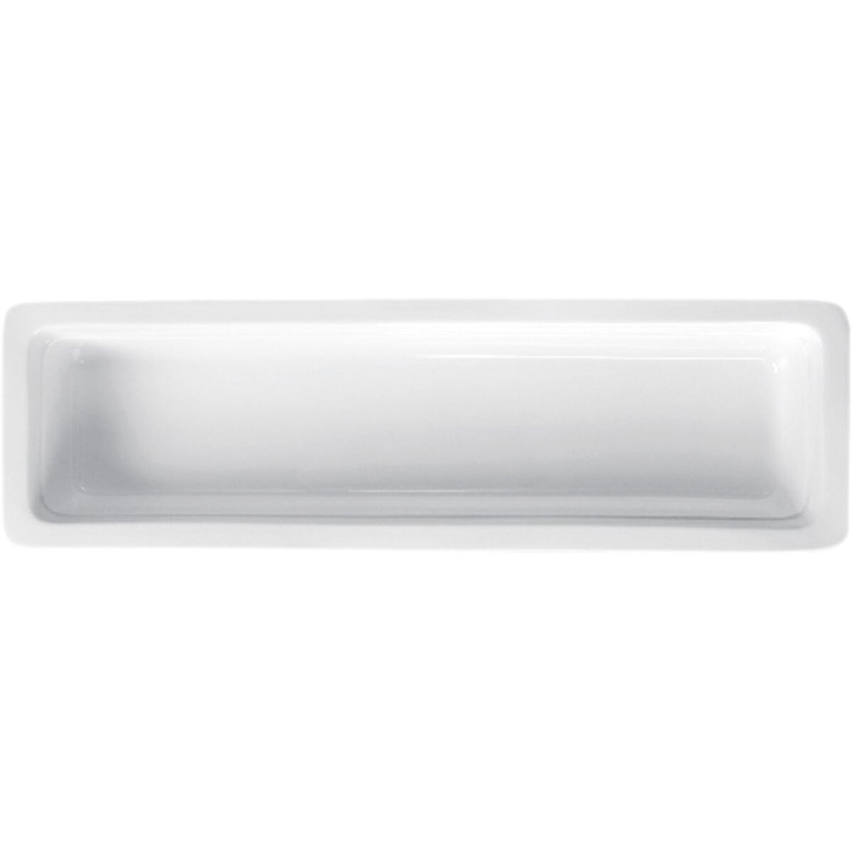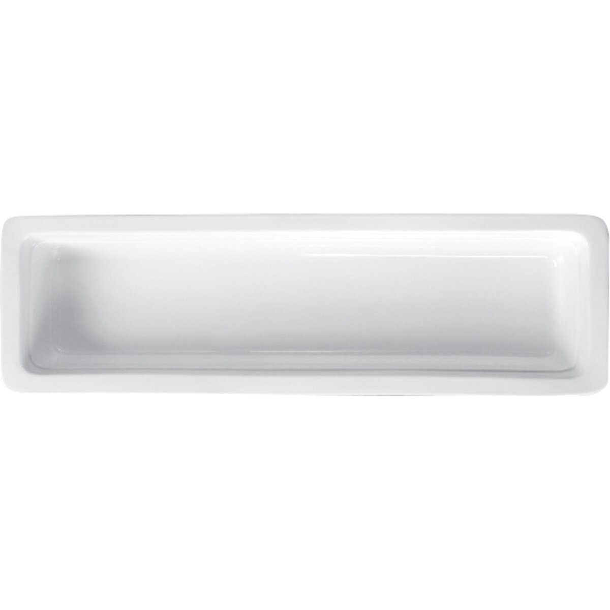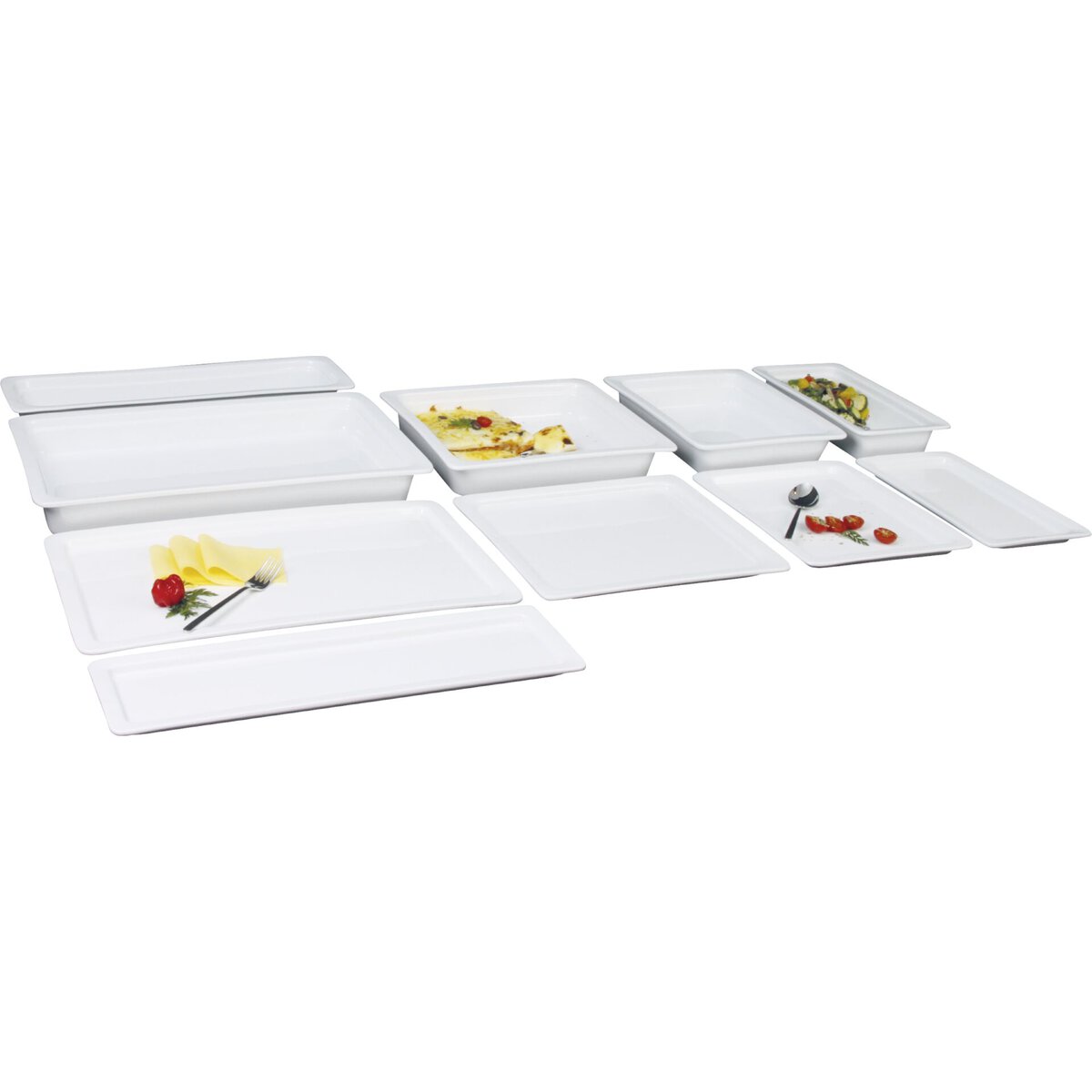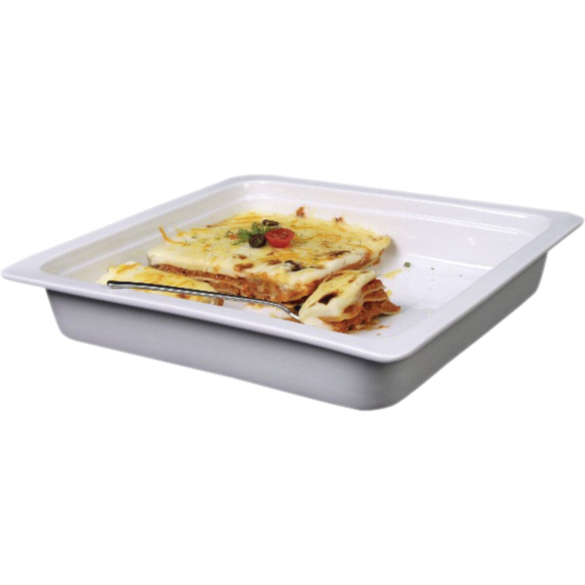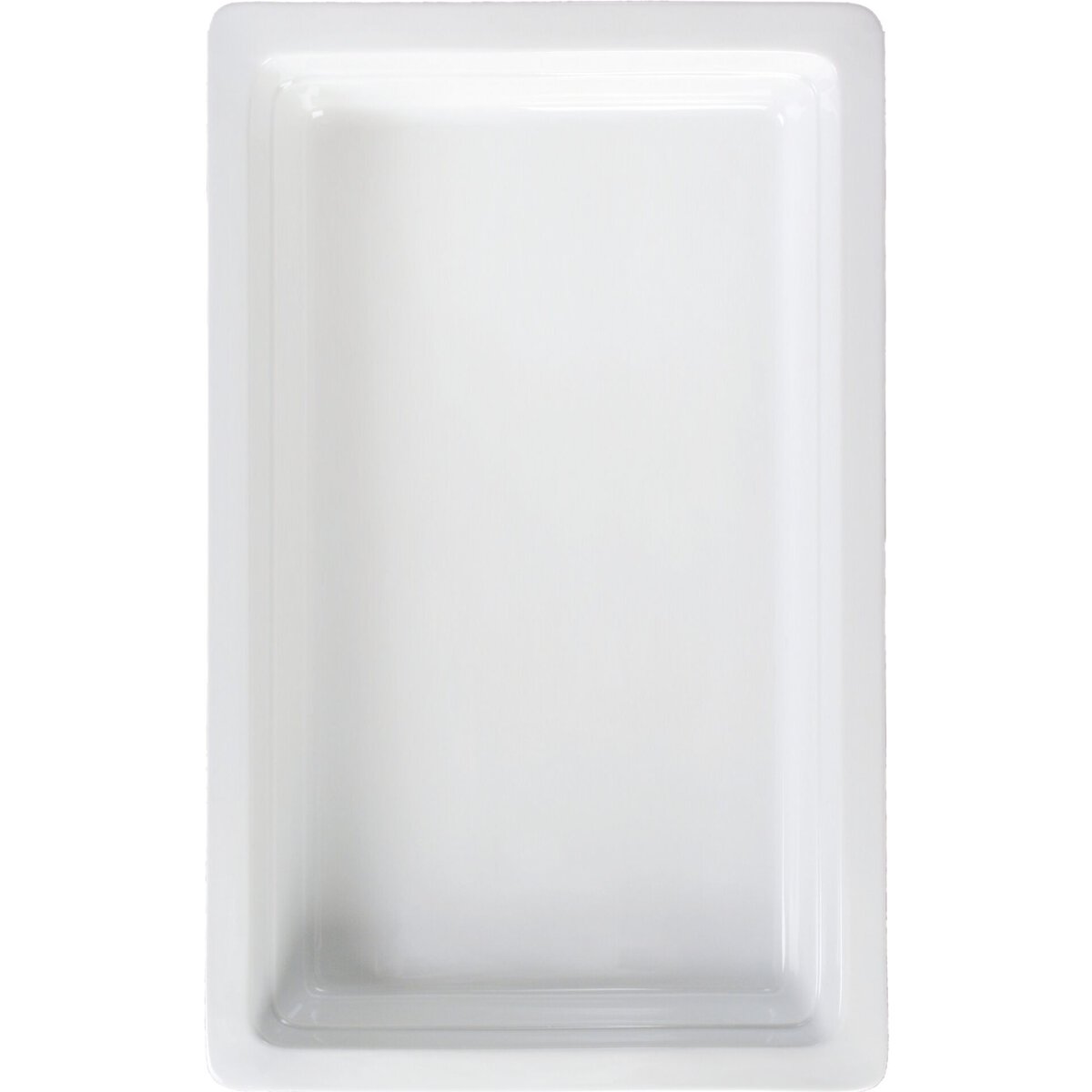 Porzellan, weiß. Tiefe 65 mm. Temperaturbereich von -20°C bis 350°C. Nicht thermoschockresistent.