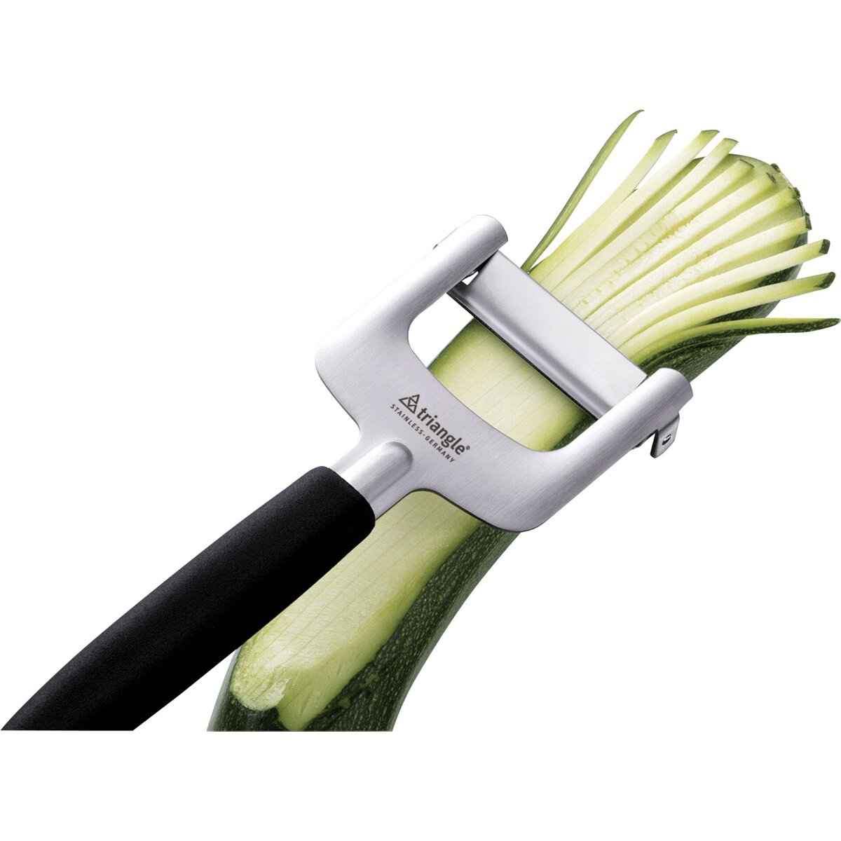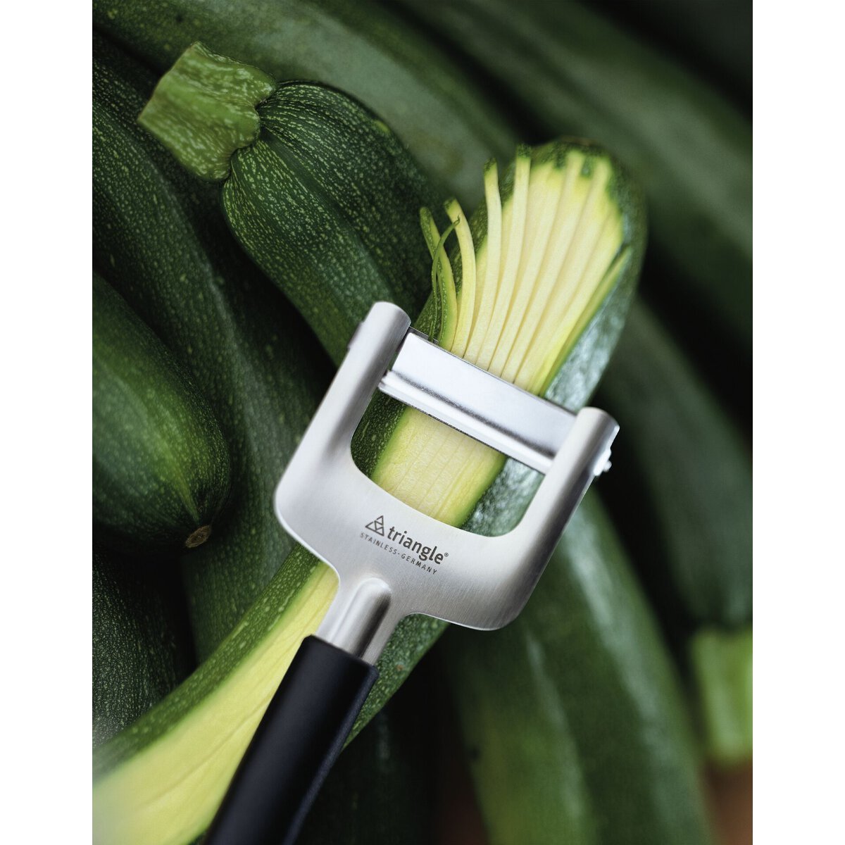 Edelstahl 18/10, PA glasfaserverstärkt, schneidet 3mm dünne Streifen. Spülmaschinengeeignet.