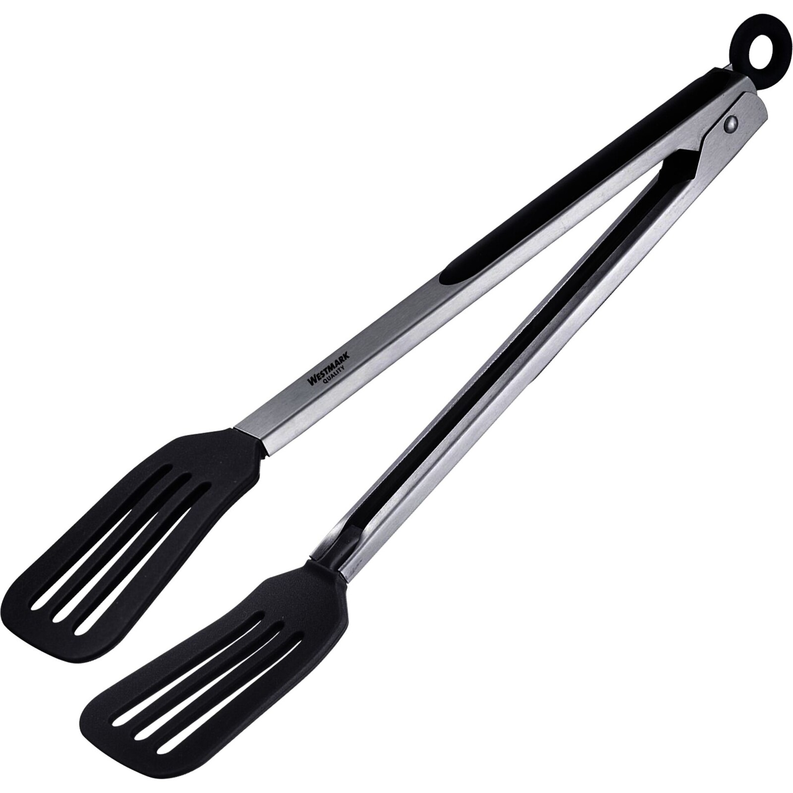 Edelstahl, TPE, Silikon. Hitzebeständig bis 200°C. Mit Feststellmechanismus und Aufhängeöse. Mit breiten Laffen aus Silikon für größeres Bratgut. Ideal für Töpfe und Pfannen mit Antihaftbeschichtung. Spülmaschinengeeignet.