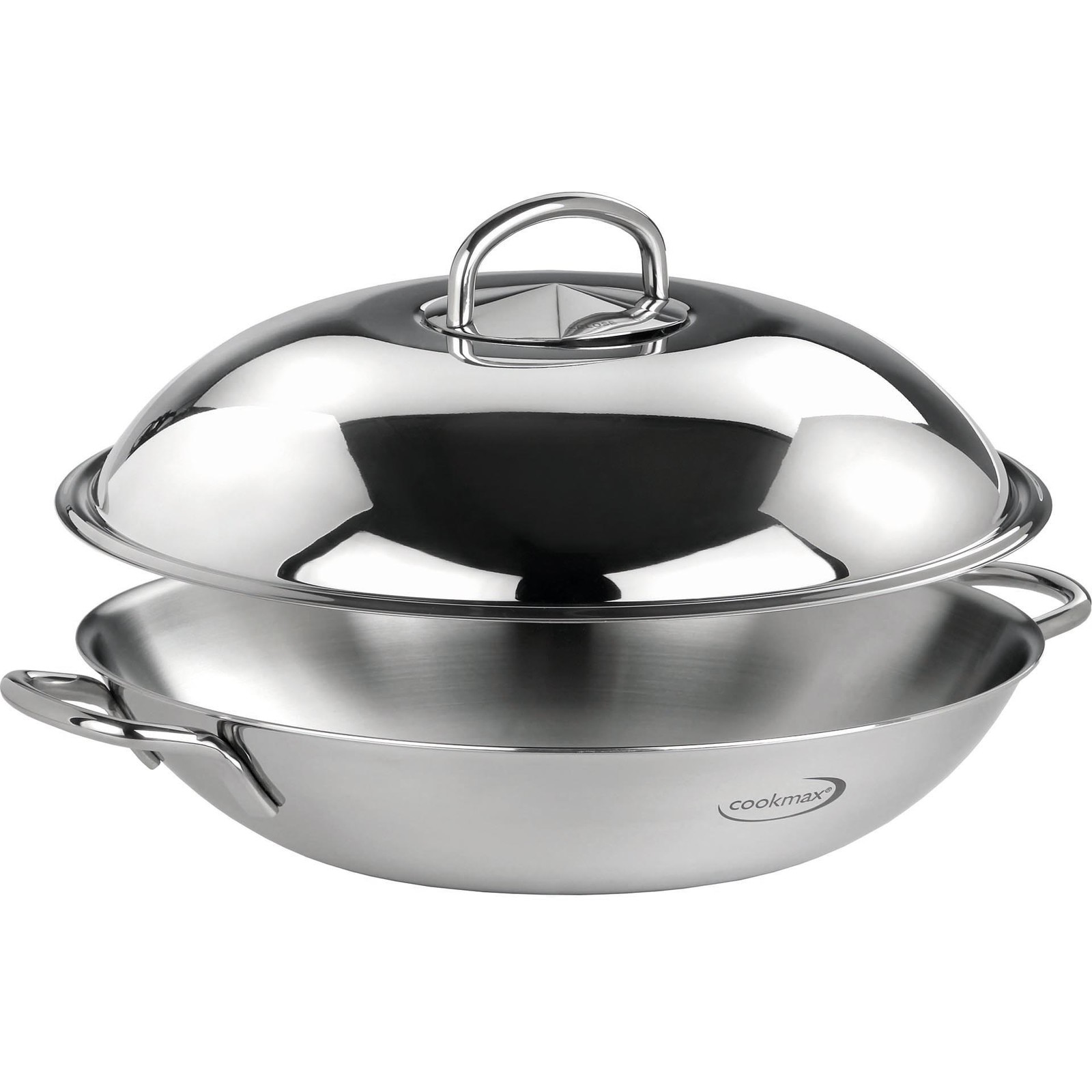 Edelstahl. 5-Ply Mehrschichtmaterial. Deckel mit Drehgriff zum Öffnen/Schließen der Luftzufuhr. Flacher, induktionsgeeigneter Boden. Höhe mit Deckel: 18cm.